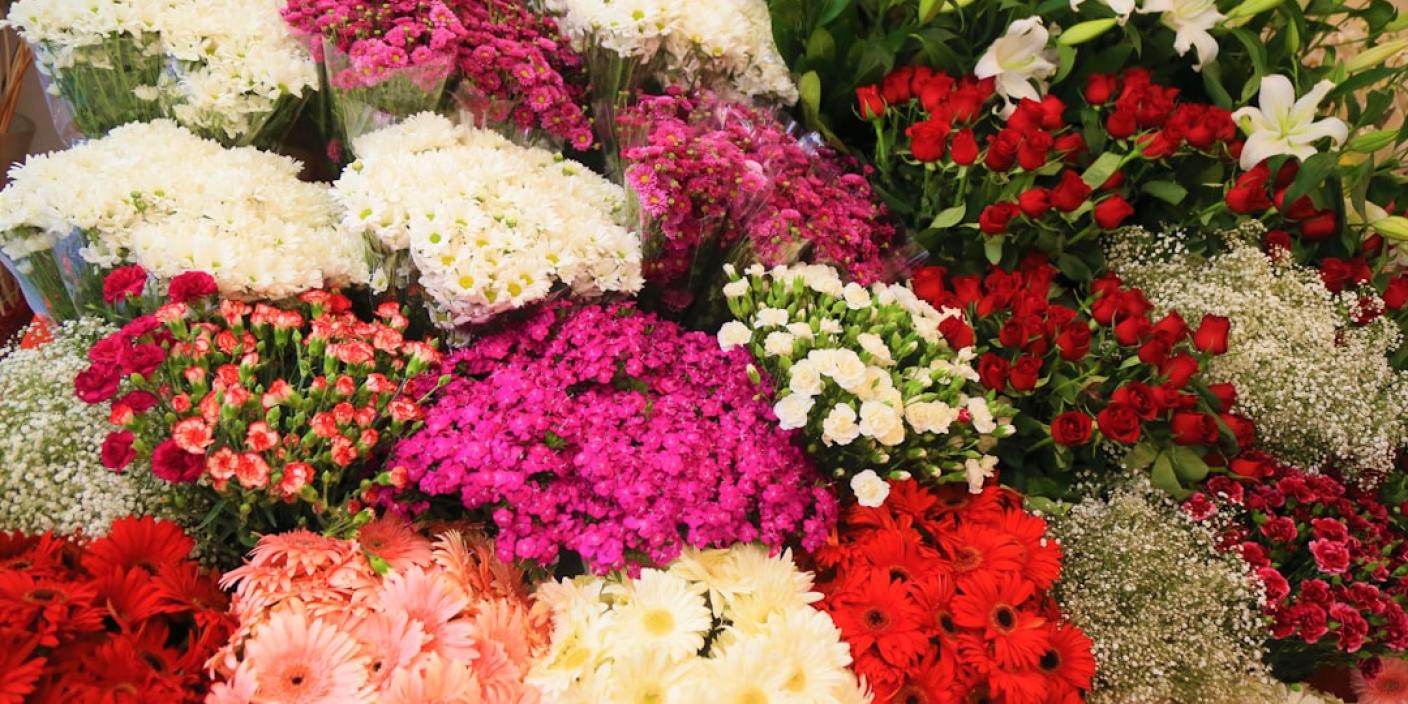 - Широкий выбор цветов и букетов